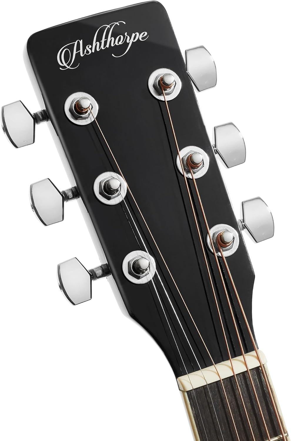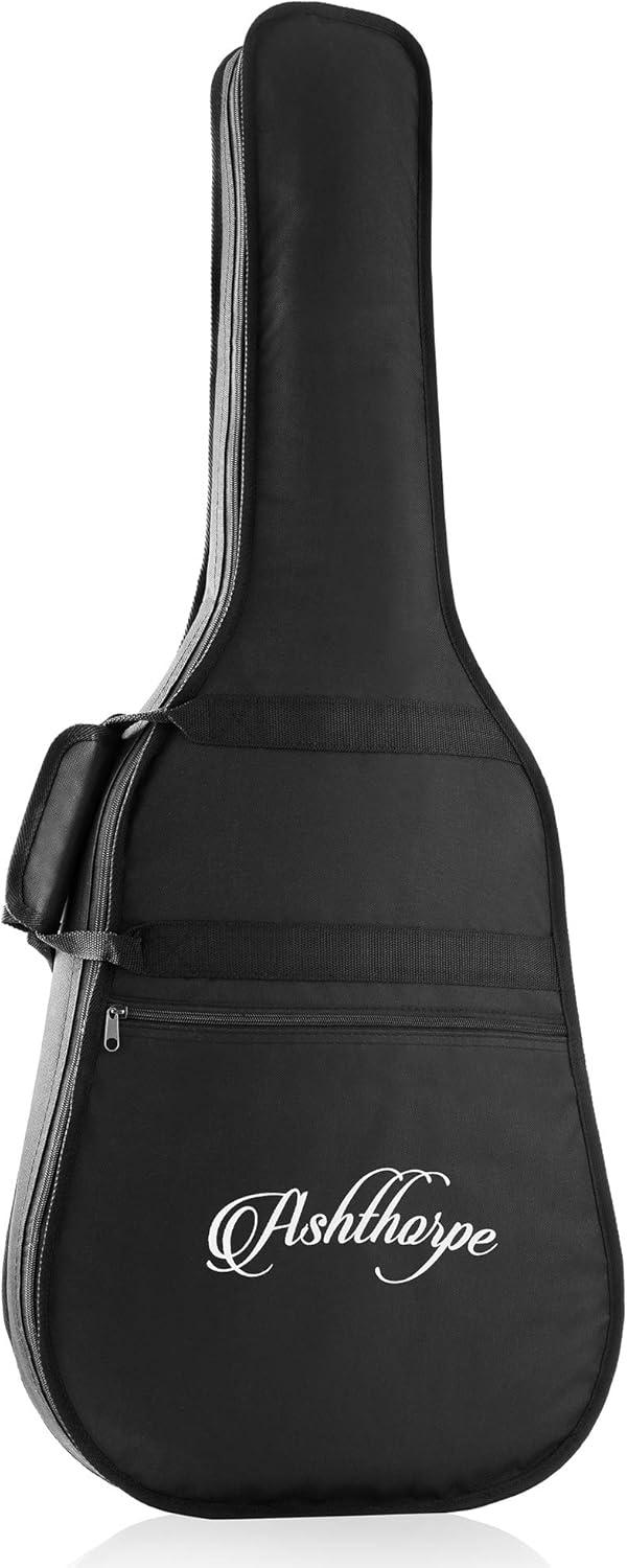 Complete kit: Bundle includes left-handed Ashthorpe guitar, soft nylon “gig bag” guitar case, (3) celluloid picks (thin, medium & heavy), on-board 4-band pickup EQ, guitar cable, shoulder strap, extra set of strings, and instructional sheet.