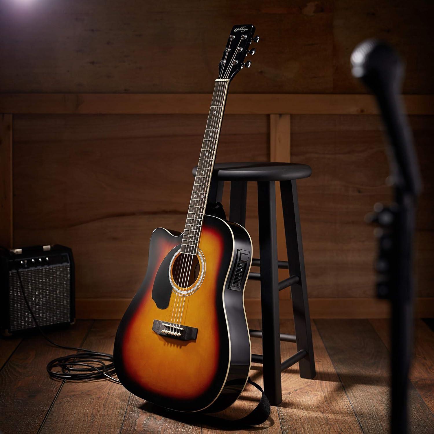 Thinline cutaway design: The body of this full-size (41″) guitar is cut away at the neck for better access and more comfortable playing of the top frets. It's also thinline (3″ thick) which creates an unparalleled sound & aesthetic, and is lightweight for burdenless travel and playing.