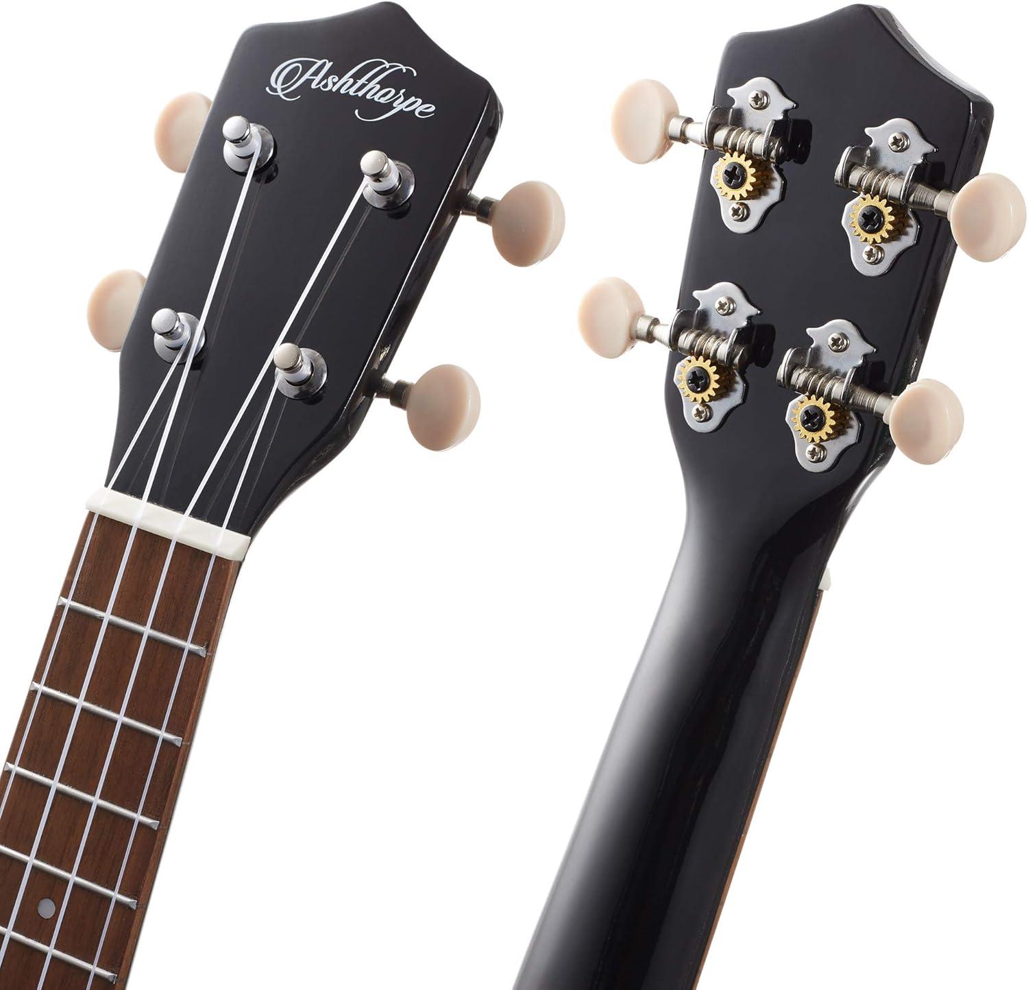 imageAshthorpe Soprano Ukulele for Beginners  Black 21inch 4 String Uke Starter Bundle Kit for Kids with Gig Bag Cloth and PicksBlack