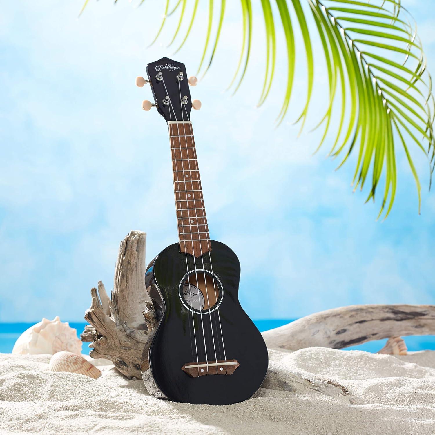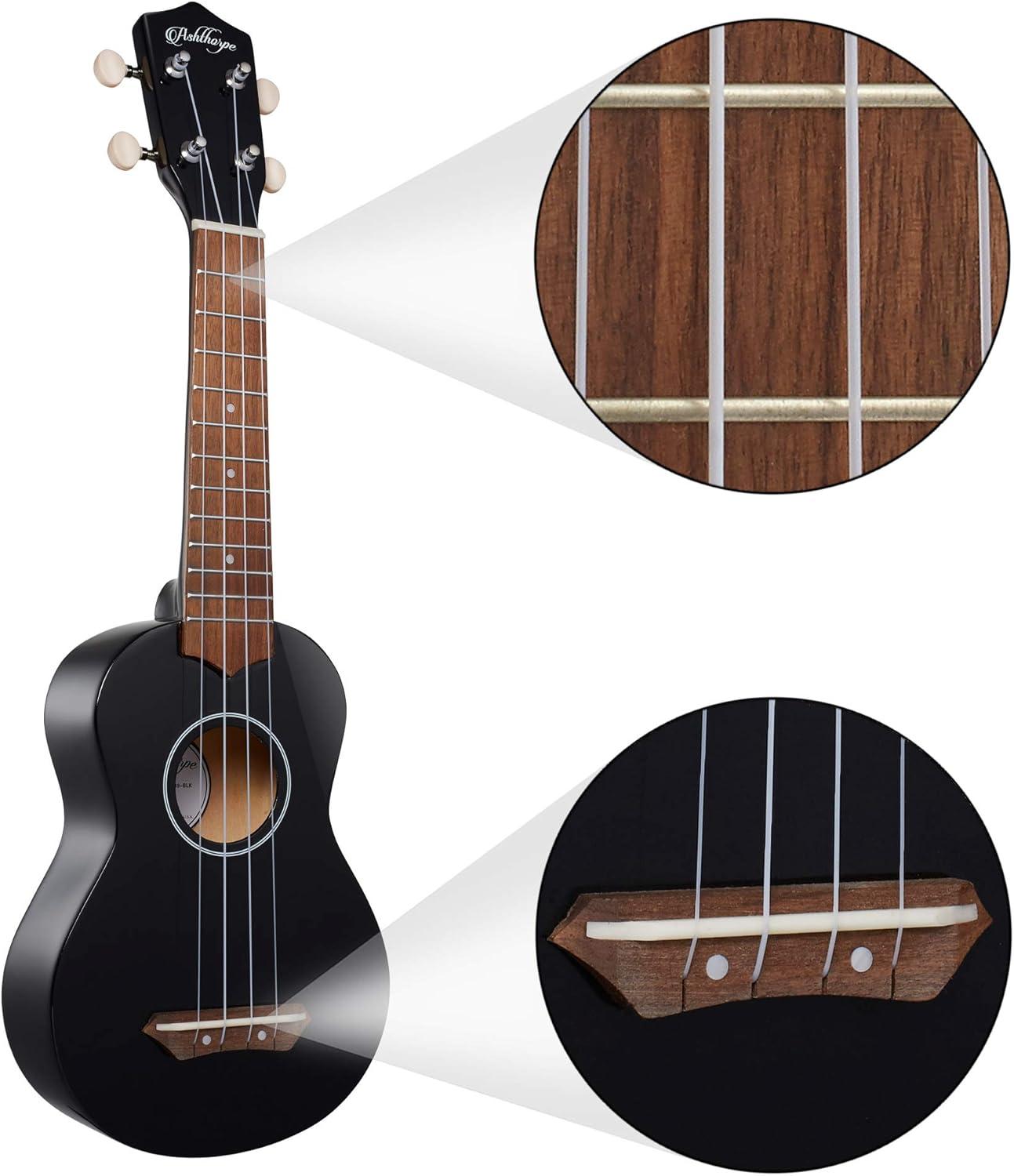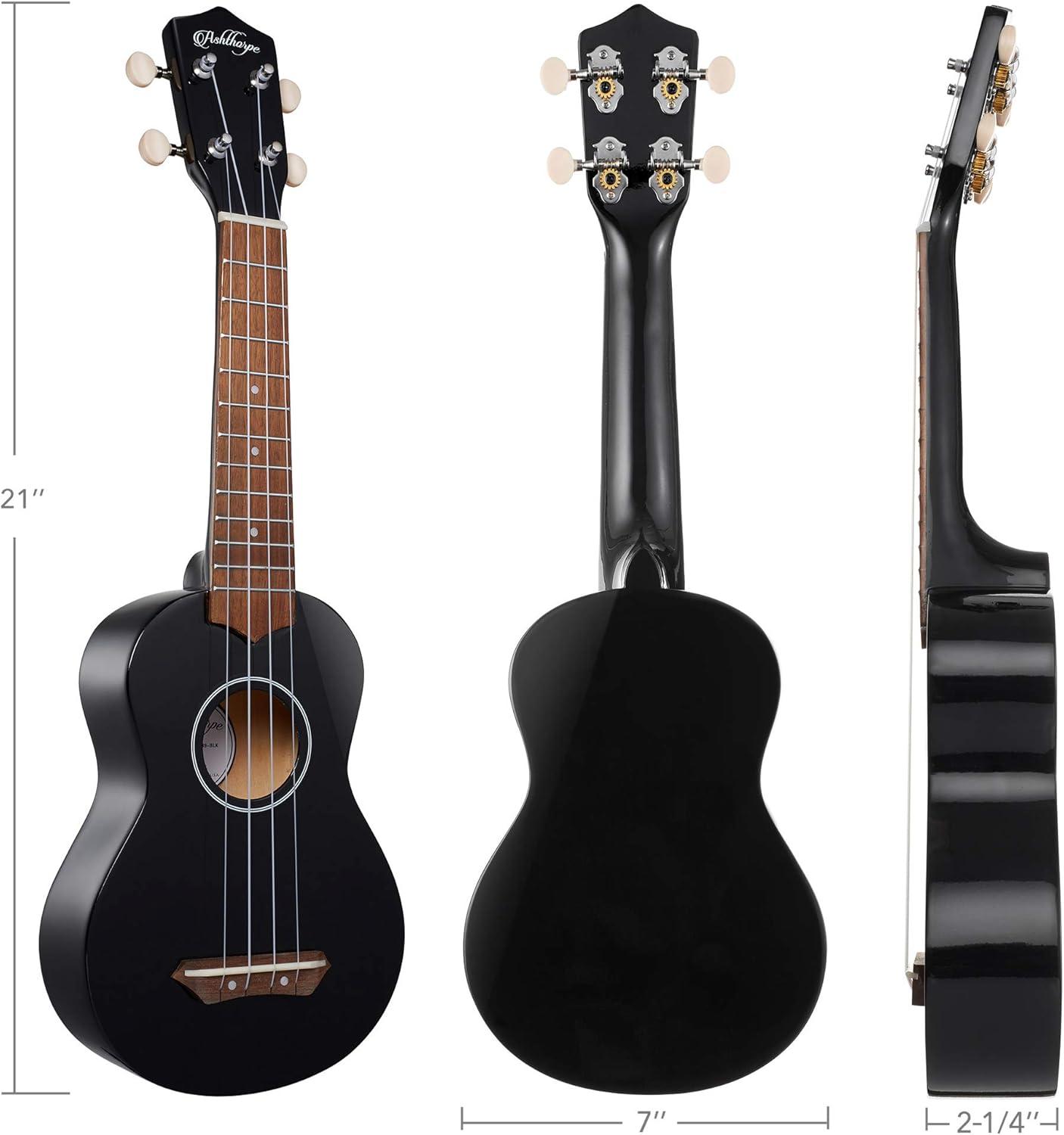 Ashthorpe Soprano Ukulele for Beginners - Black, 21-inch 4 String Uke Starter Bundle Kit for Kids with Gig Bag, Cloth, and Picks(Black)